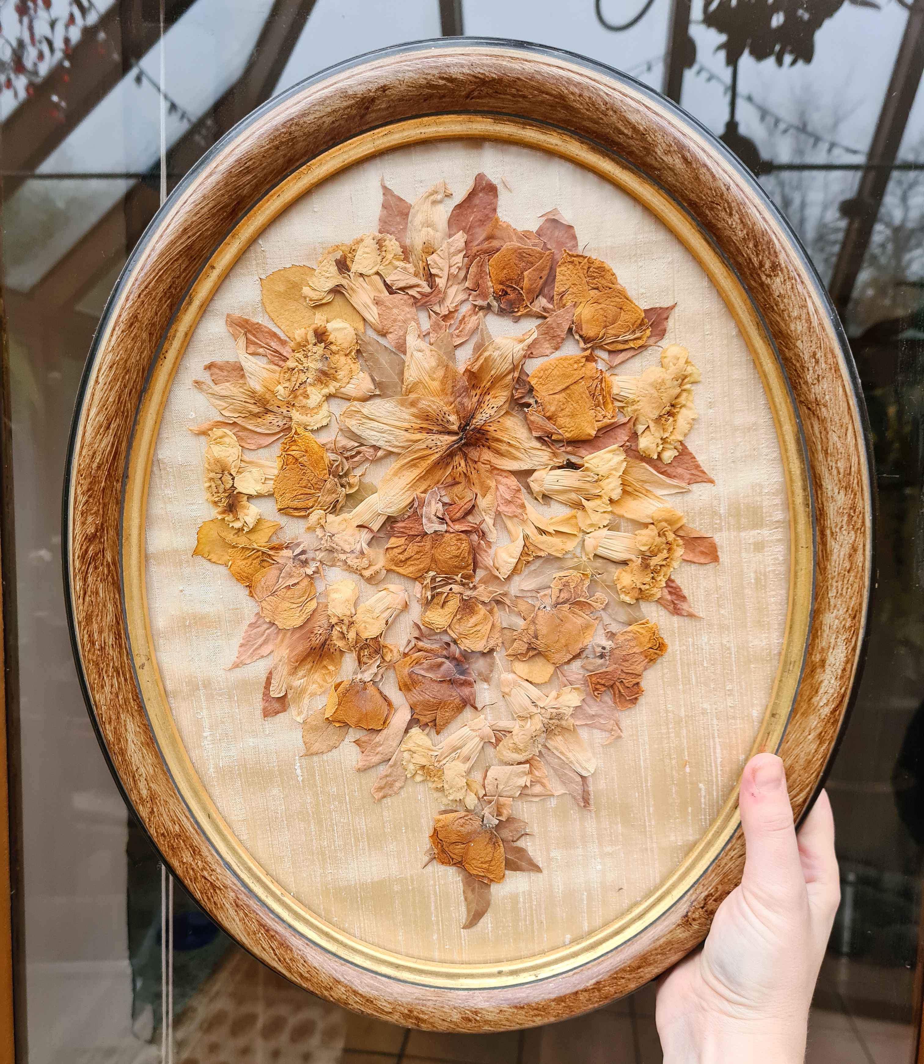 Preserve the opulence of your themed wedding in a frame to keep forever with pressed flowers
