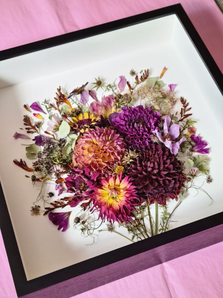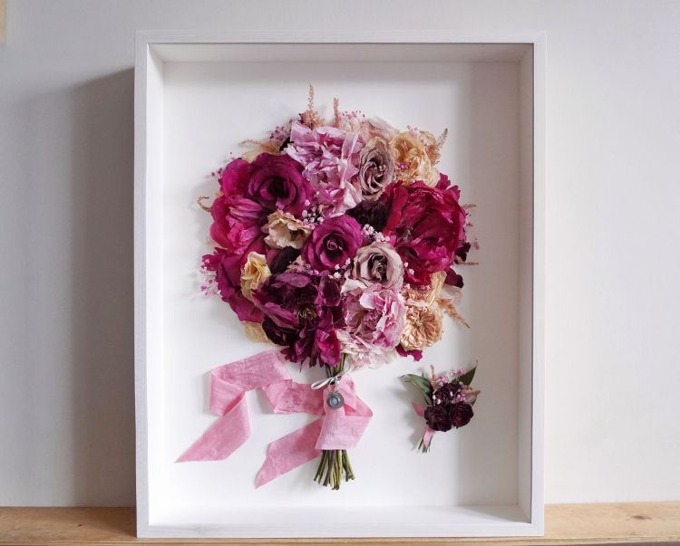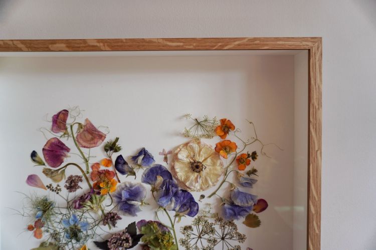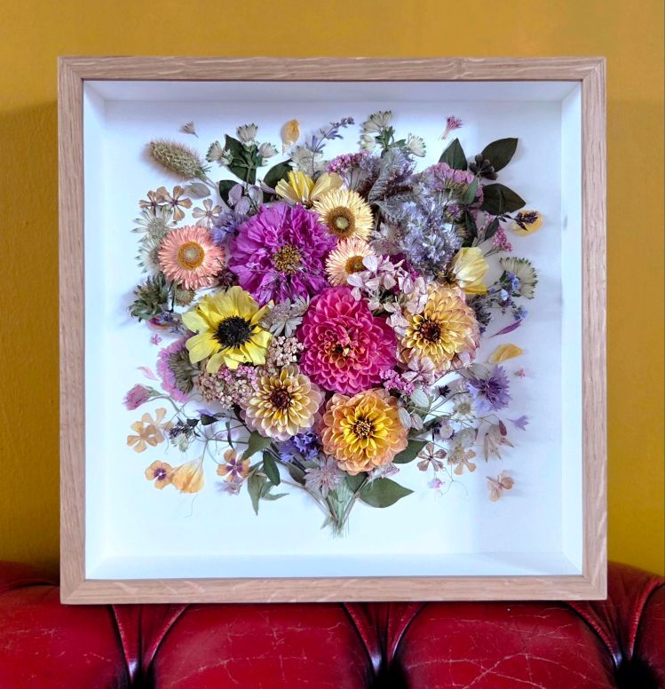 I meticulously photograph your arrangements before carefully deconstructing and pressing or 3D drying your flowers. And I work with Wax Fine Art Framing in Somerset to produce exquisite, contemporary frames that compliment and enhance every single petal.
